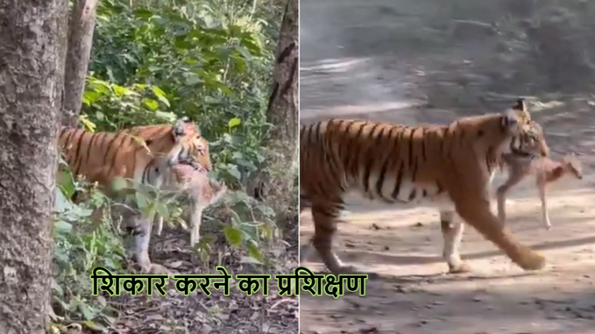 एक बाघिन ने अपने नन्हें शावक को जंगली जानवरों का शिकार करना सिखाया। VIDEO जिम कॉर्बेट नेशनल पार्क का है। इसे एक IAS ने एक्स पर पोस्ट किया। देखें दिलचस्प वीडियो...।