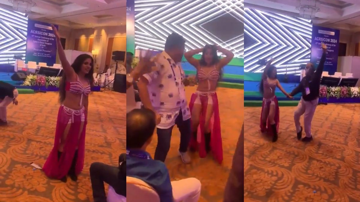 वीडियो को सोशल मीडिया प्लेटफॉर्म एक्स पर शेयर किया है। वीडियो में एक लड़की पुरुषों से भरे एक हॉल में जैकलीन के ‘रा रा रक्कम्मा’ गाने पर डांस करती नजर आ रही है। लड़की उस तरह के कपड़े पहने हैं, जिस तरह से जैक्लीन ने गाने की वीडियो मे कपड़े पहने थे। बताया जा रहा है कि यह वीडियो चेन्नई में आयोजित ACRISICON 2024 (एसोसिएशन ऑफ कोलन एंड रेक्टल सर्जन ऑफ इंडिया) की 47वीं कॉन्फ्रेंस का है।