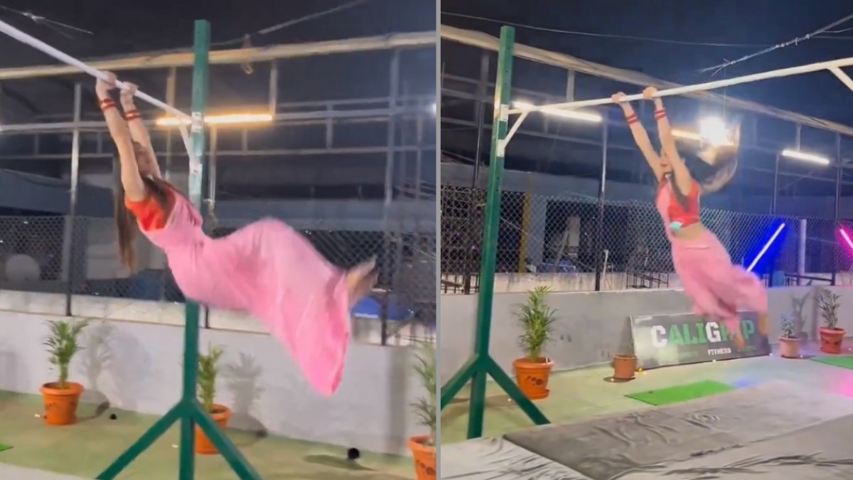 महिला ने दिखाया 'गजब का करतब', गुलाबी साड़ी में किया जिमनास्ट परफॉर्म; देखें VIDEO