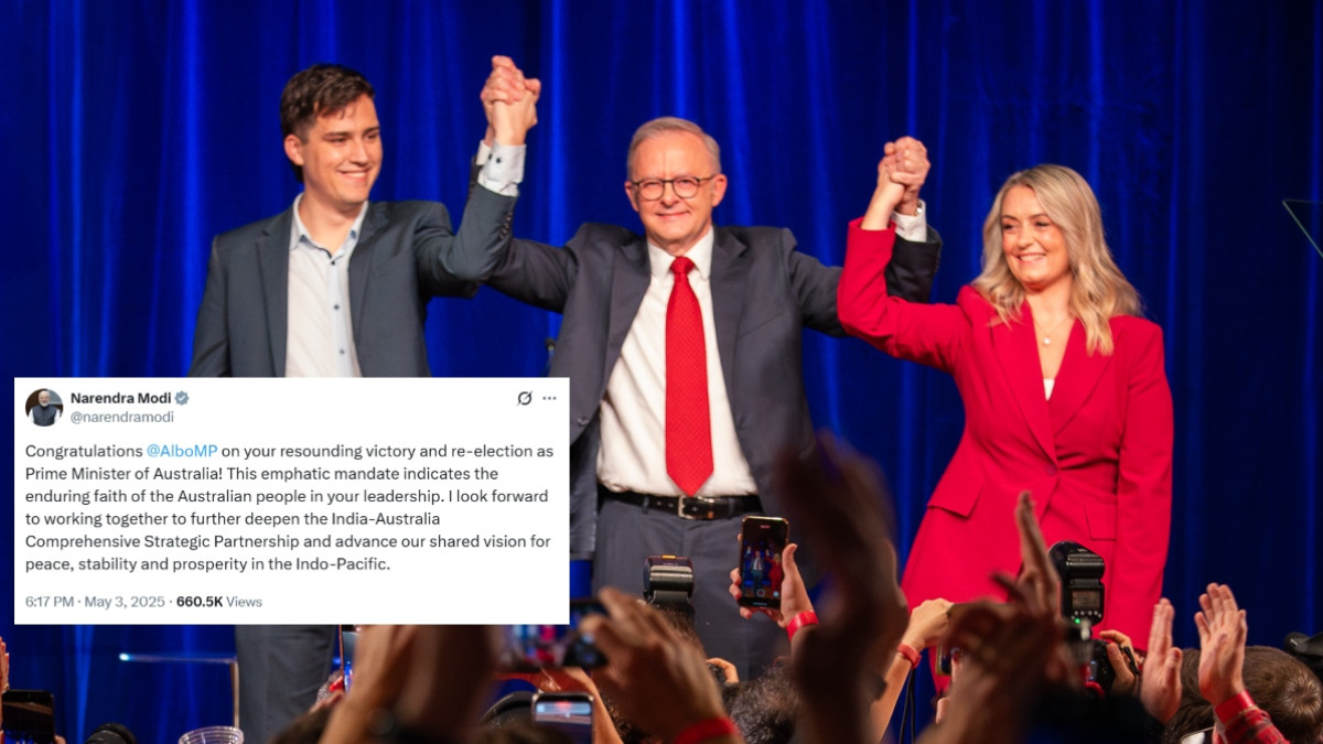 पीएम मोदी ने एक्स पर एंथनी अल्बनीज को टैग करते हुए लिखा, ''@AlboMP को ऑस्ट्रेलिया के प्रधानमंत्री के रूप में आपकी शानदार जीत और पुनः निर्वाचित होने पर बधाई! यह जनादेश आपके नेतृत्व में ऑस्ट्रेलियाई लोगों के स्थायी विश्वास को दर्शाता है। मैं भारत-ऑस्ट्रेलिया व्यापक रणनीतिक साझेदारी को और गहरा करने और इंडो-पैसिफिक में शांति, स्थिरता और समृद्धि के लिए हमारे साझा दृष्टिकोण को आगे बढ़ाने के लिए मिलकर काम करने के लिए तत्पर हूं।''