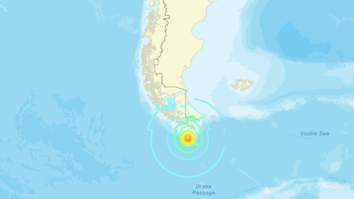 Epicenter in Drake Passage, close to southern tip of Argentina & affecting coastal Chile#Argentina #Chile #earthquake #magnitude #Tsunami #alert pic.twitter.com/jNTeMJz8uF