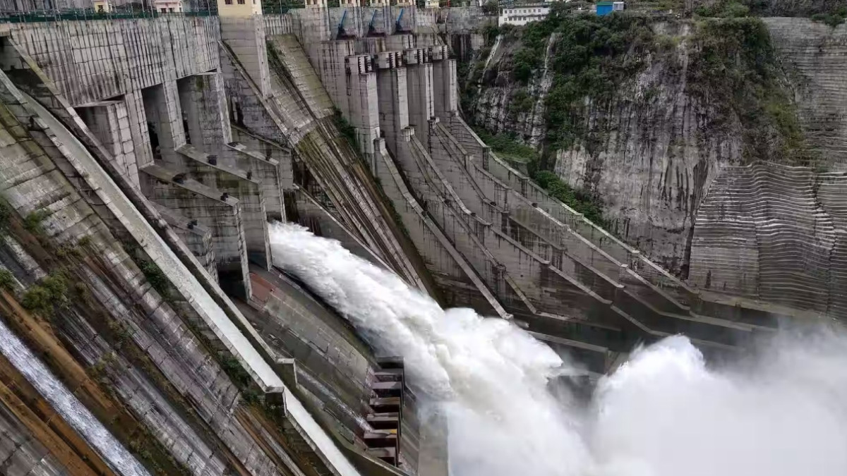 #WATCH | J&K: Latest visuals from Ramban where all gates of Baglihar Hydroelectric Power Project Dam on Chenab River are closed. pic.twitter.com/aqyAQOoMCY