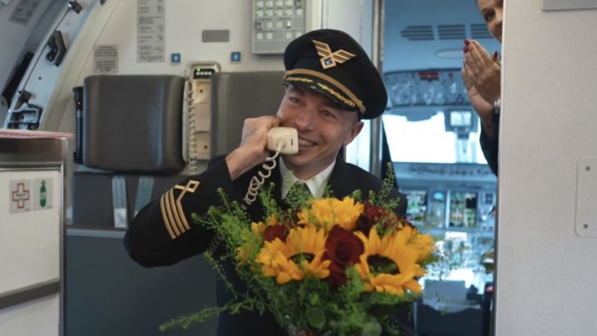 Pilot proposes to flight attendant girlfriend before take-off ✈️pic.twitter.com/gll9miKXWO