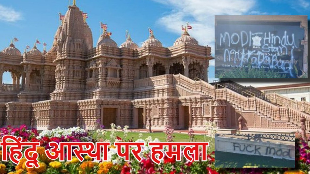 अमेरिका में हिंदू आस्था पर हमला: दक्षिणी कैलिफोर्निया के स्वामी नारायण मंदिर में तोड़फोड़, दीवारों पर लिखे हिंदू विरोधी नारे