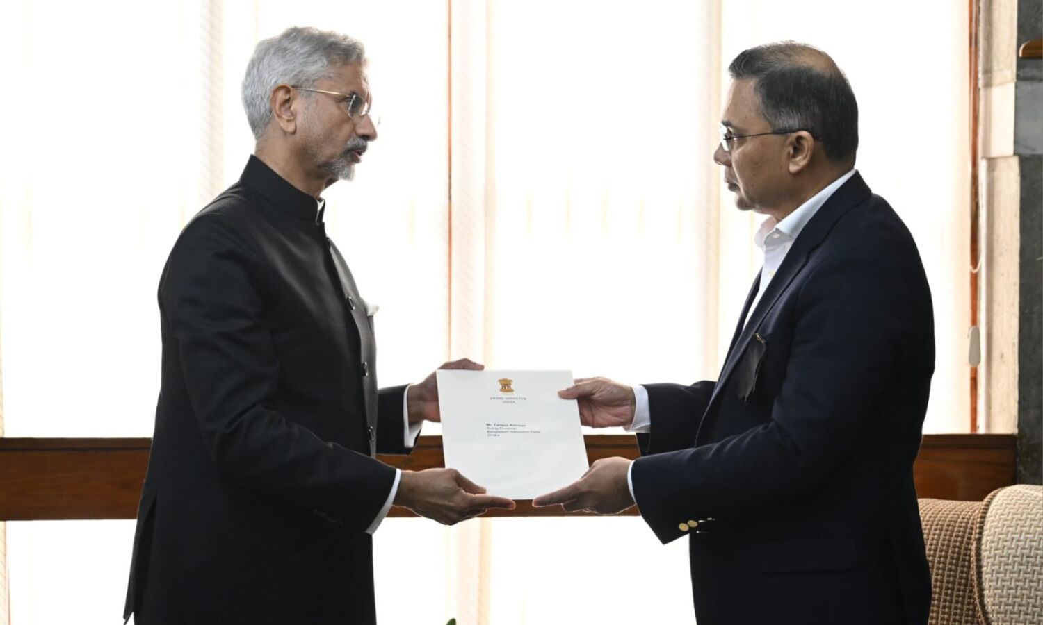 विदेश मंत्री एस जयशंकर ने ढाका पहुंचकर BNP के कार्यकारी अध्यक्ष तारिक रहमान को प्रधानमंत्री नरेंद्र मोदी का शोक पत्र सौंपा।