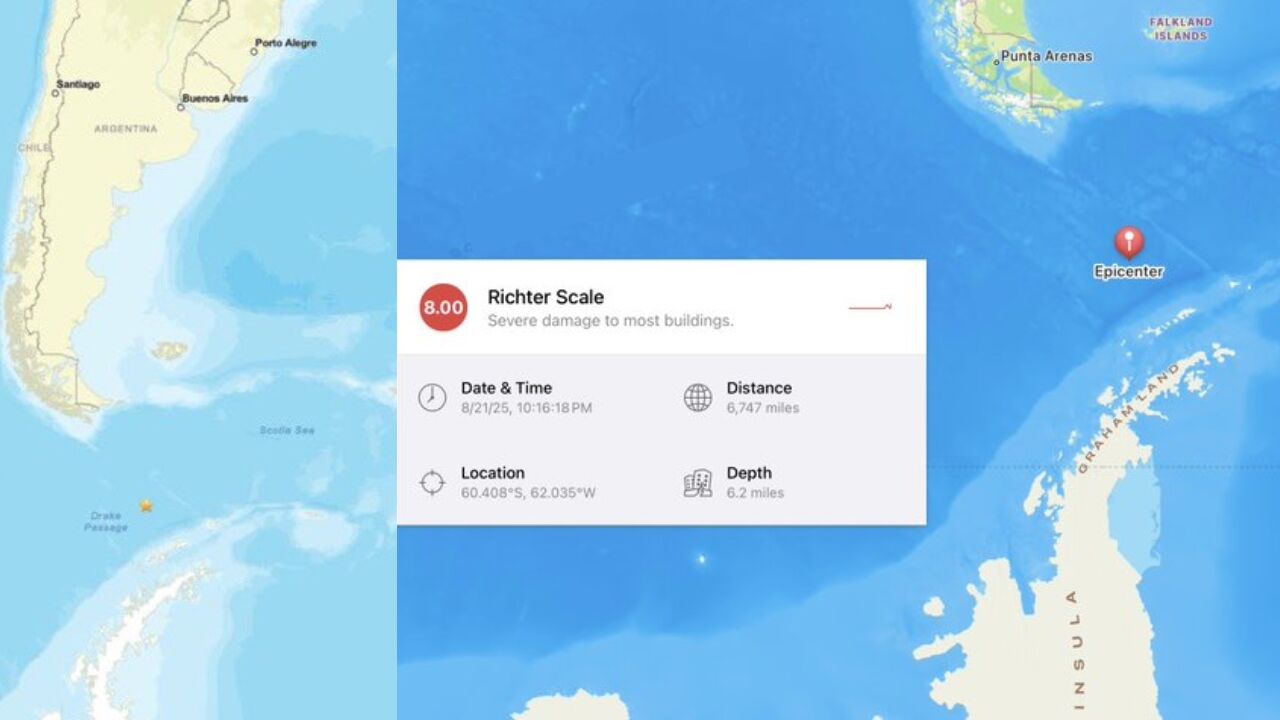 राष्ट्रीय भूकंप विज्ञान केंद्र (एनसीएस) ने कहा, भूकंप की तीव्रता 7.4 थी और यह सुबह 7:46 बजे (आईएसटी) 36 किलोमीटर की गहराई पर आया है। यह भी बताया गया कि भूकंप का केंद्र अर्जेंटीना के दक्षिण में ड्रेक पैसेज के पास 10.8 किमी की गहराई में था। इससे पहले मई 2025 में भी यहां 7.5 तीव्रता का भूकंप आया था।