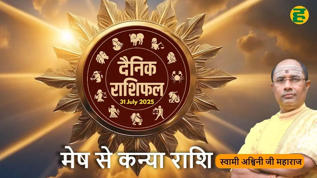 Aaj ka rashifal: 31 जुलाई 2025, गुरुवार का दिन चंद्र गोचर के अनुसार कैसा रहेगा? स्वामी अश्विनी जी महाराज के अनुसार मेष राशि वालों को आज नए मौके मिल सकते हैं। दोस्तों से मदद मिलने की संभावना है। मिथनु वालों का दिन अच्छा गुजरेगा। नौकरी में प्रमोशन की संभावना है। यहां जानिए गुरुवार (31 जुलाई) का मेष से कन्या राशि वालों का चंद्र राशिफल।