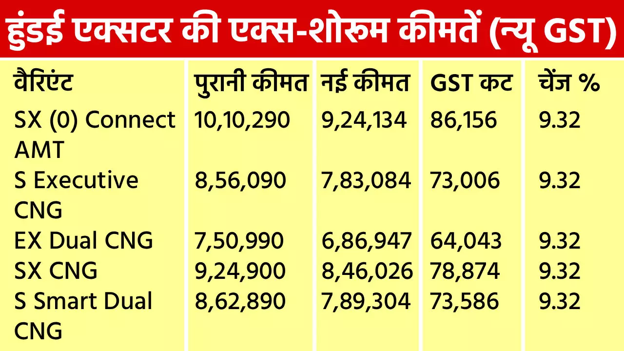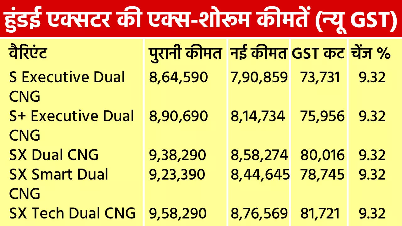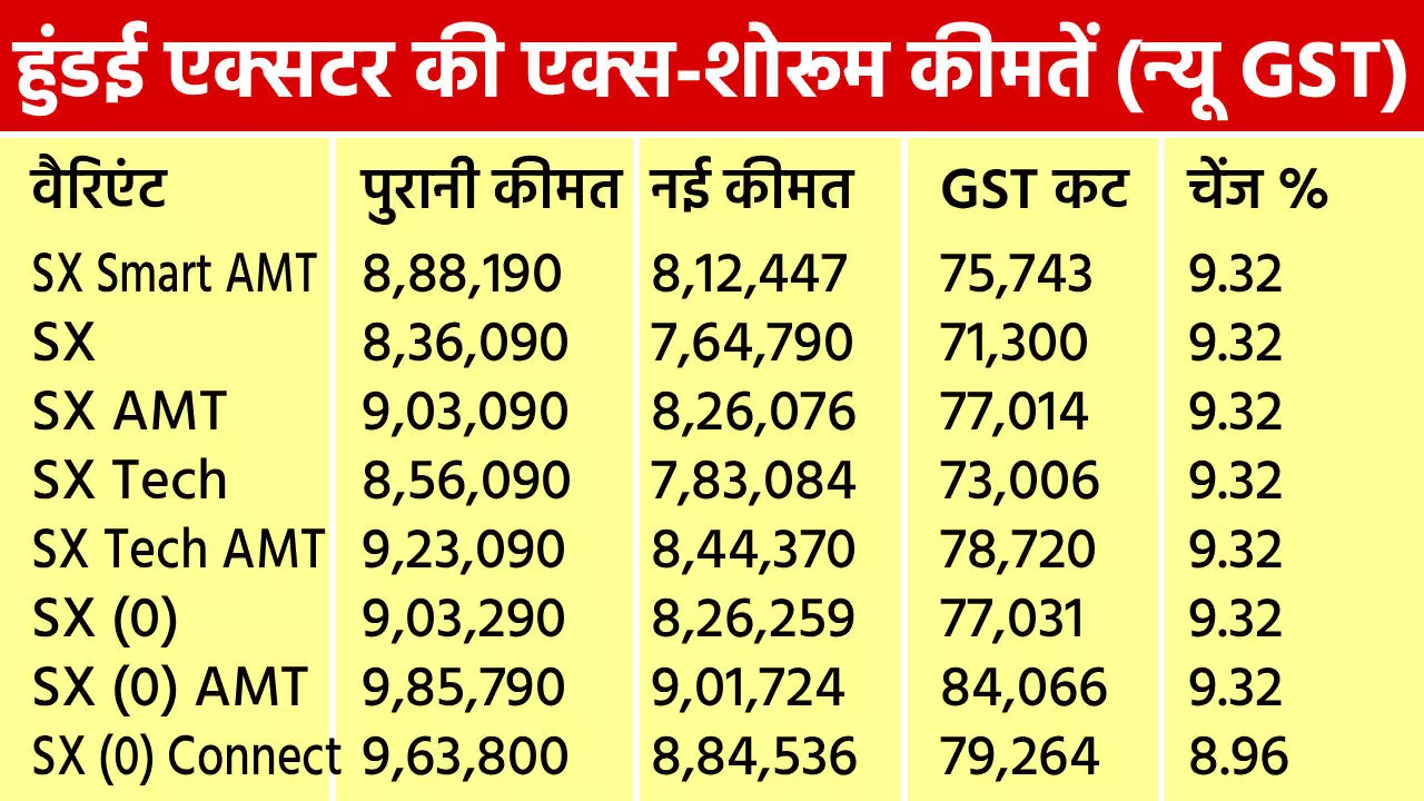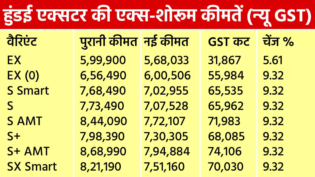 Hyundai Exter New Price List: जीएसटी 2.0 लागू, सभी वैरिएंट हुए सस्ते; जानें कितना मिलेगा फायदा