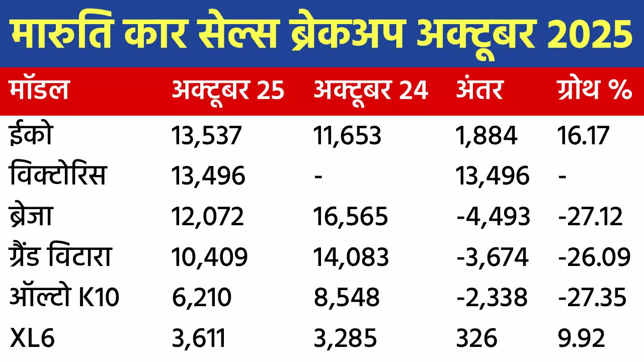 - ईको की अक्टूबर 2025 में 13,537 यूनिट बिकीं। अक्टूबर 2024 में इसकी 11,653 यूनिट बिकी थीं। यानी इसकी 1,884 यूनिट ज्यादा बिकीं।