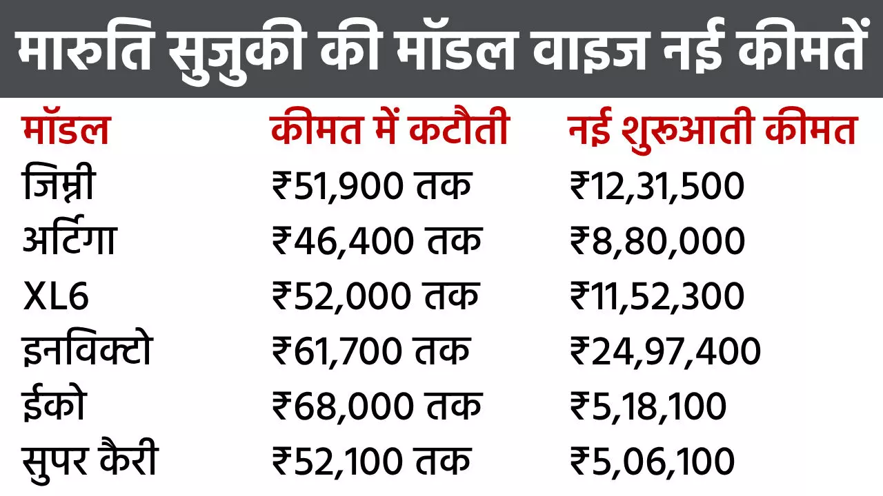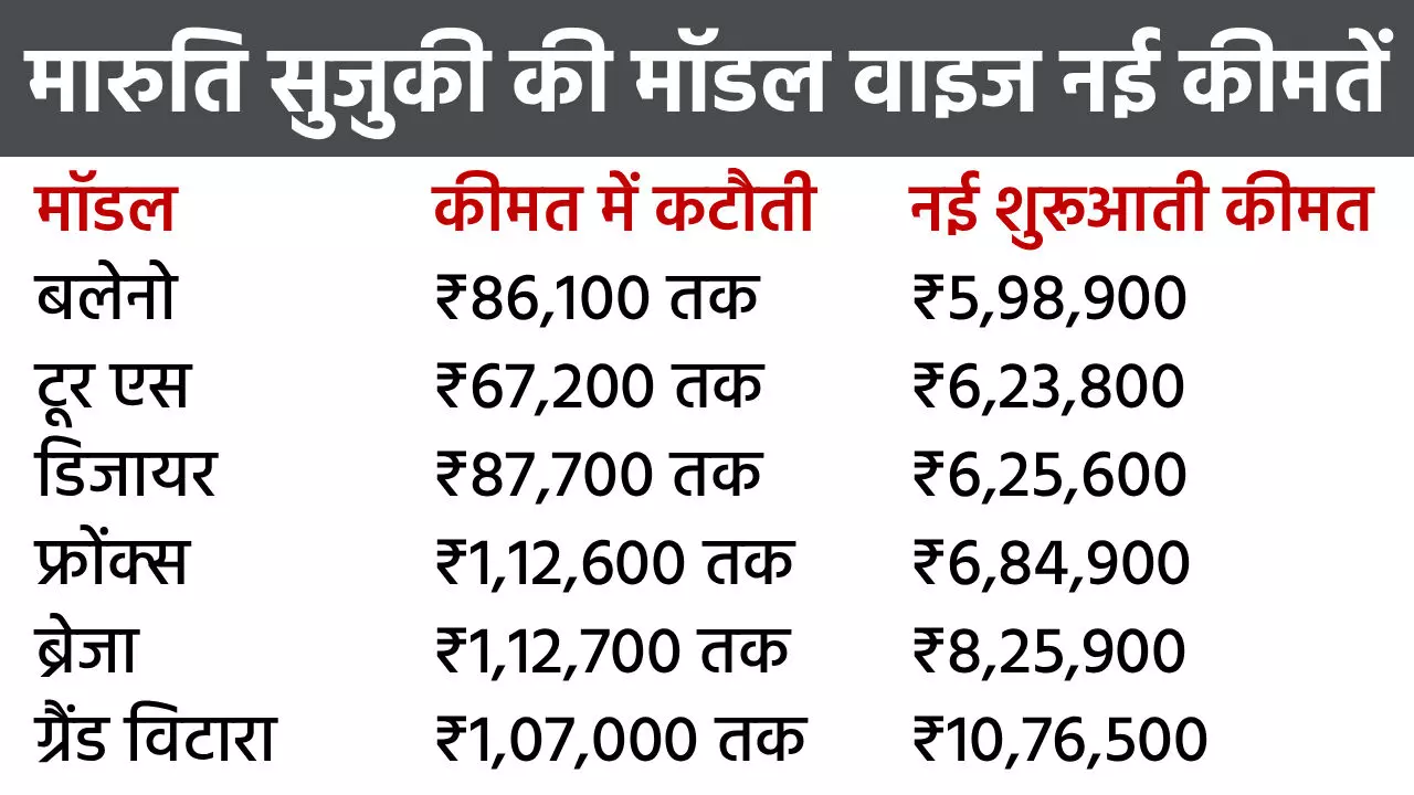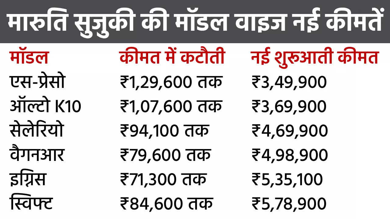 Maruti Car Prices: एक ही झटके में हमेशा के लिए ₹1.29 लाख तक सस्ती हों गईं कार, कंपनी ने शेयर की नई प्राइस लिस्ट