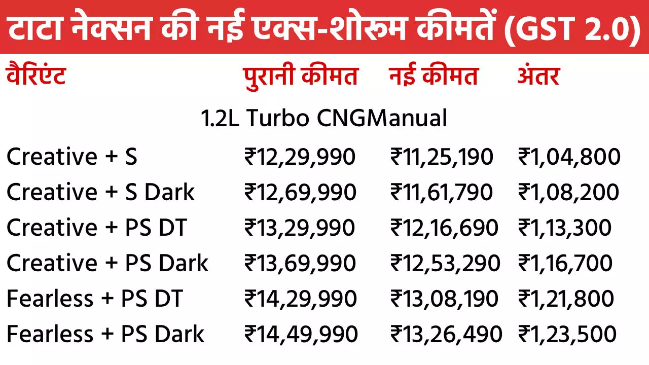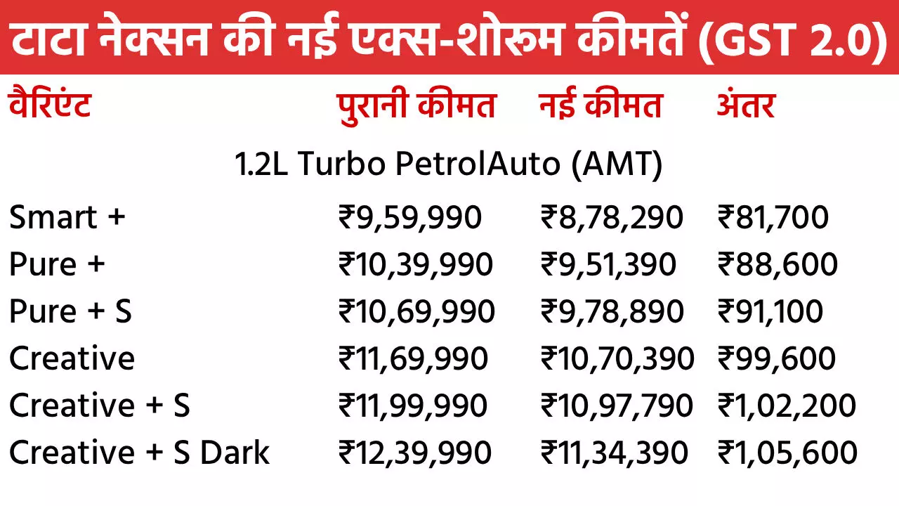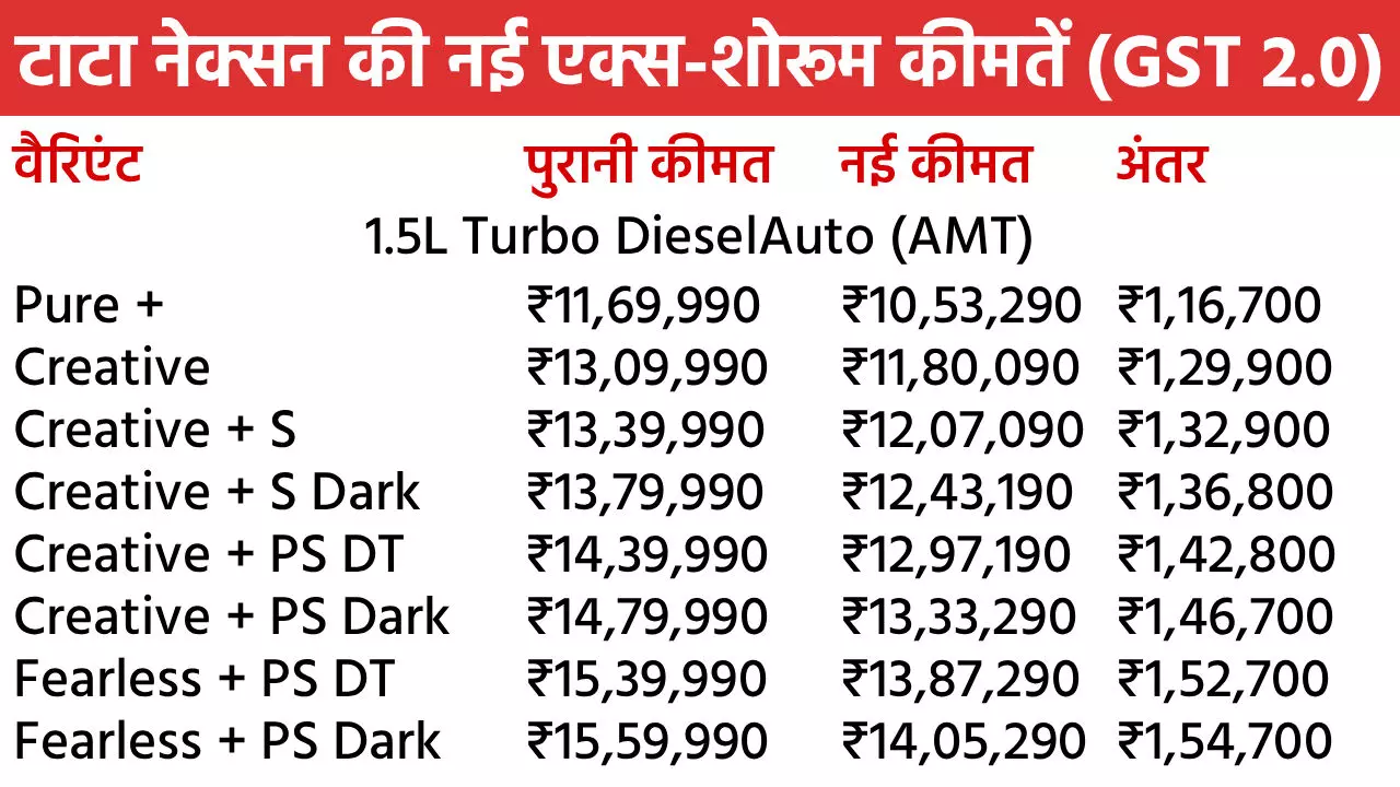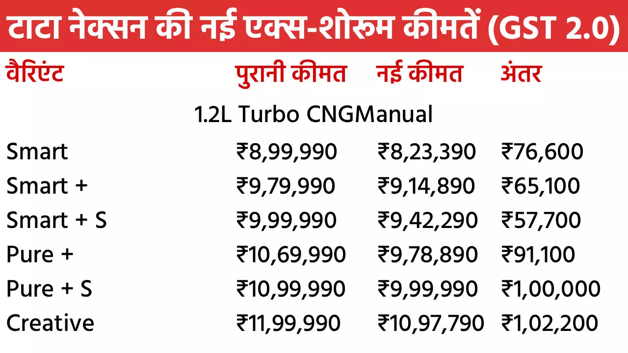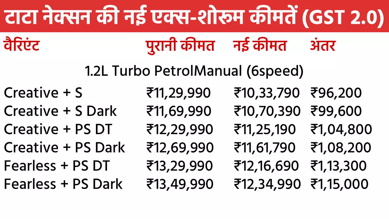 Tata Nexon Diwali Discount in October 2025: टाटा मोटर्स अपनी नंबर-1 कार नेक्सन पर शानदार दिवाली डिस्काउंट दे रही है। इस महीने ये SUV खरीदने पर पूरे 2 लाख रुपए तक के फायदे मिलेंगे। नेक्सन पर मिलने वाले इस बेनिफिट में नए GST 2.0 से इसकी कीमत में 1.55 लाख रुपए की टैक्स कटौती भी शामिल है। इसके साथ कंपनी 45 हजार रुपए तक के दूसरे बेनिफिट भी मिलेंगे। इसमें कैश डिस्काउंट, स्क्रैपेज ऑफर और कॉर्पोरेट डील्स शामिल हैं। सितंबर में नेक्सन को सबसे ज्यादा खरीदा गया। चलिए नेक्सन के सभी वैरिएंट की नई एक्स-शोरूम कीमतों पर नजर डालते हैं।