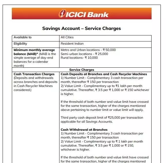 नए नियम के तहत, अर्ध-शहरी (Semi-Urban) क्षेत्रों में यह सीमा ₹25,000 और ग्रामीण (Rural) क्षेत्रों में ₹10,000 तय की गई है। बैंक ने स्पष्ट किया है कि बैलेंस बनाए रखने में विफल रहने पर ग्राहकों से कमी की राशि का 6% या ₹500 (जो कम हो) जुर्माना वसूला जाएगा। इस बदलाव के बाद ICICI बैंक देश में सबसे अधिक न्यूनतम बैलेंस रखने वाला बैंक बन गया है।