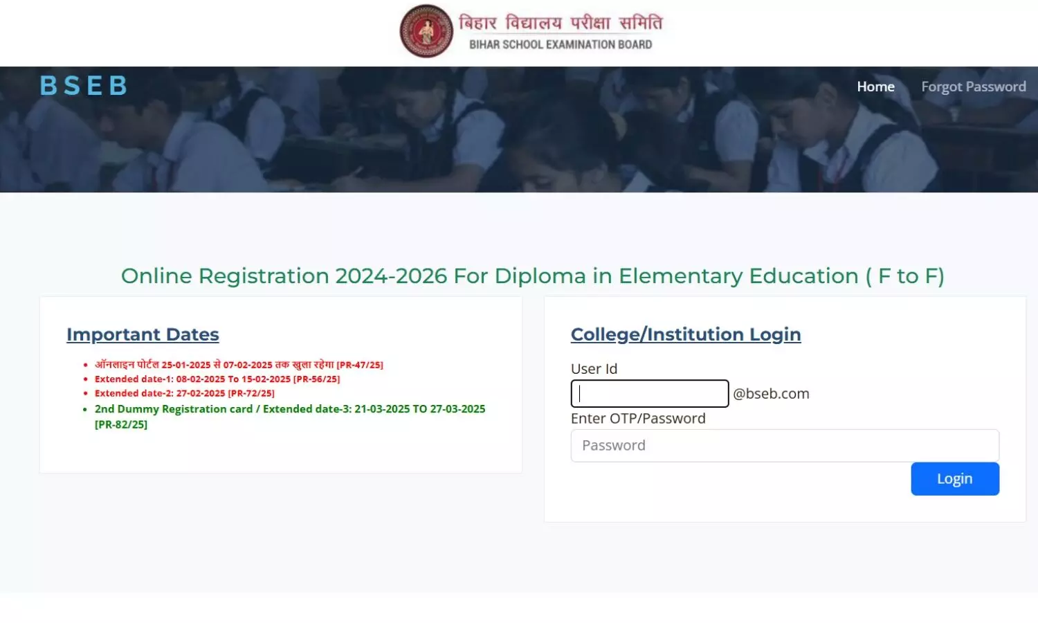 BSEB DElEd CET 2026 के लिए रजिस्ट्रेशन की अंतिम तारीख बढ़ गई है।