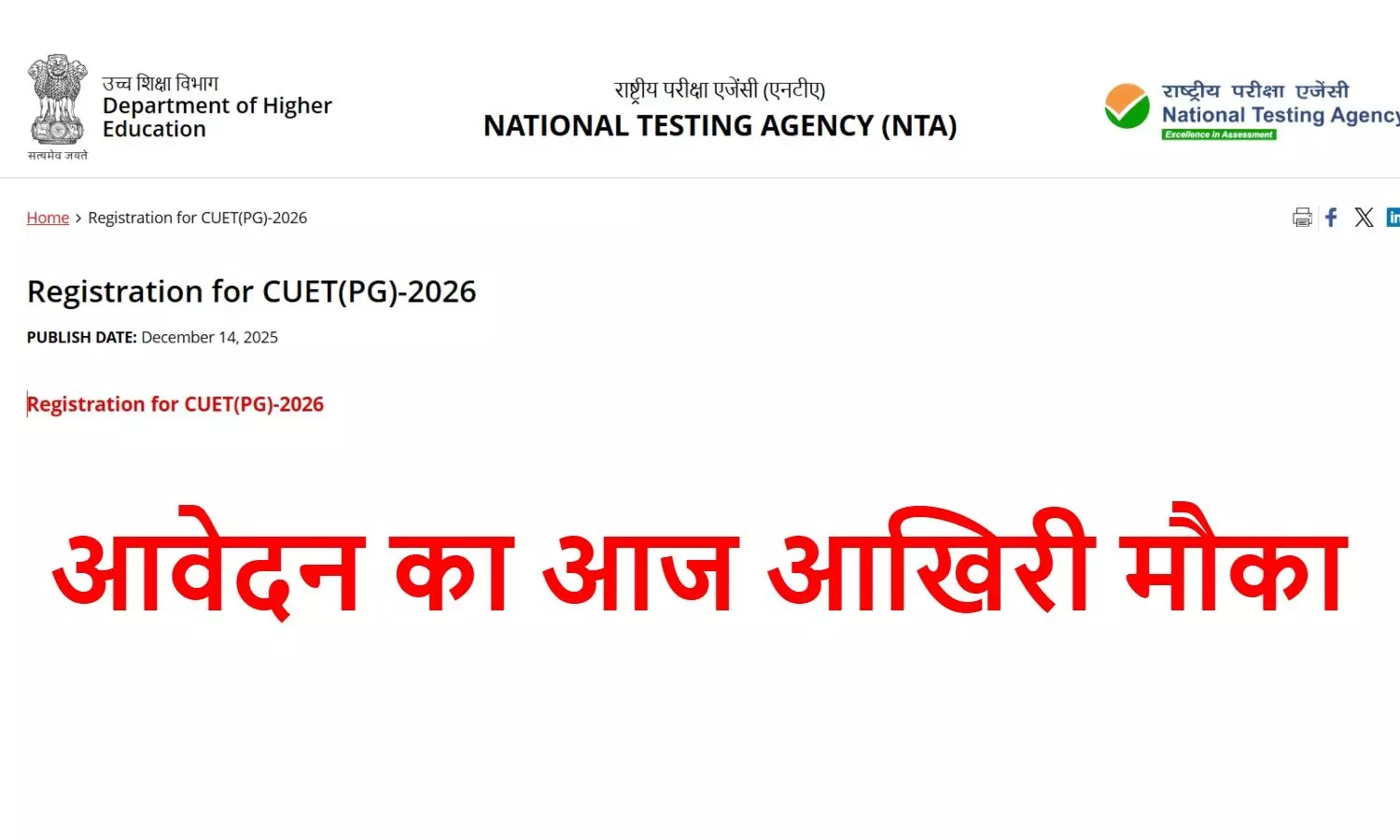 CUET PG 2026: रजिस्ट्रेशन आज होगा बंद, exams.nta.nic.in पर तुरंत करें आवेदन