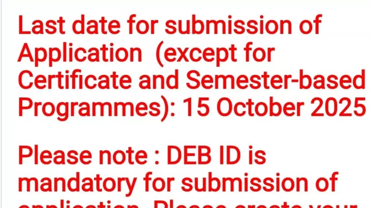 Last date for submission of Application (except for Certificate and Semester-based Programmes) for Online Programmes offered by IGNOU extended up to 15 October 2025https://t.co/CEsoSY4bua pic.twitter.com/38mMnTdarT