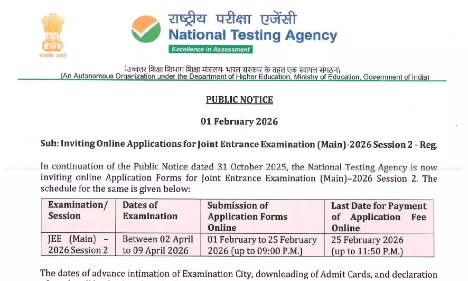 जो अभ्यर्थी जनवरी 2026 में आयोजित JEE Main सेशन में शामिल हो चुके हैं, वे भी अपने स्कोर को बेहतर करने के लिए अप्रैल सेशन में दोबारा आवेदन कर सकते हैं। NTA छात्रों को एक से अधिक सेशन में परीक्षा देने का मौका देता है।