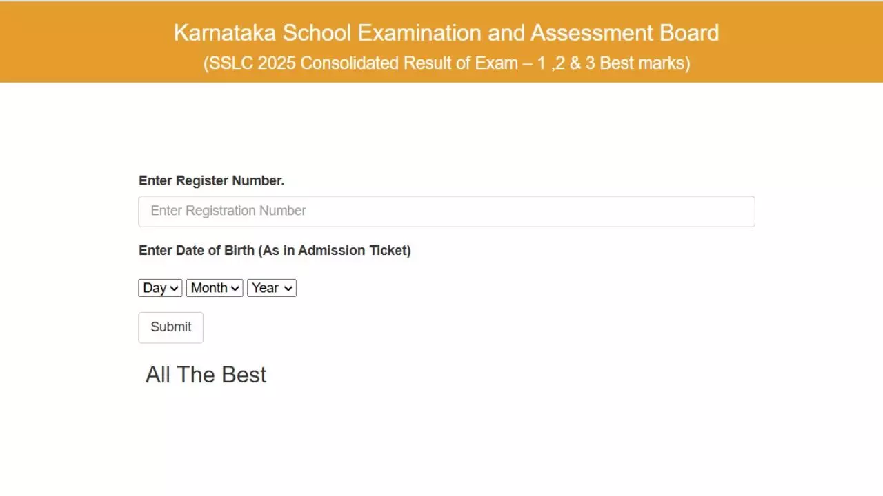- होमपेज पर “Karnataka SSLC Exam 3 Result 2025” के लिंक पर क्लिक करें।
