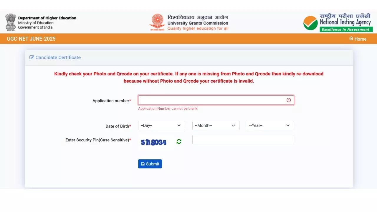 - होमपेज पर UGC NET June 2025 Certificates Download लिंक पर क्लिक करें।