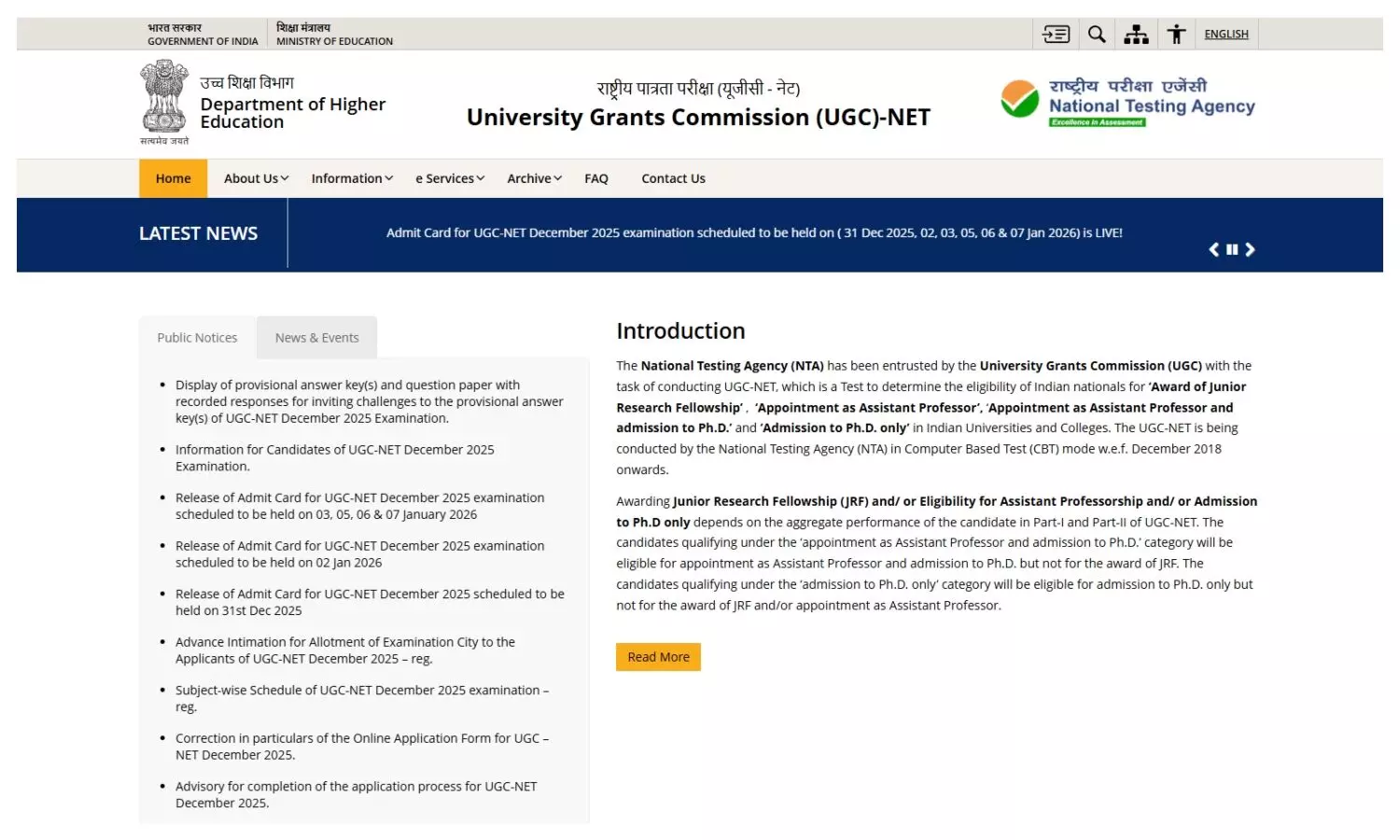 - होम पेज पर दिए गए “UGC NET December 2025 Result” लिंक पर क्लिक करें।