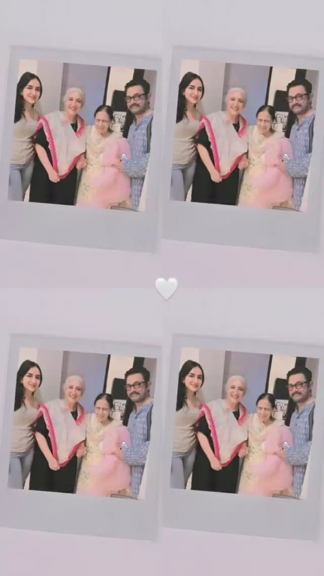 एक और तस्वीर में जीनत हुसैन केक काट रही हैं और खान फैमिली से भरे लोग आसपास उन्हें घेर कर खड़े हैं। इस ग्रुप पिक्चर में आमिर की लेडीलव गौरी स्प्रैट हैं, जो क्रॉप्ड ब्लू शर्ट और ब्लैक पैंट में दिखाई दे रही हैं।