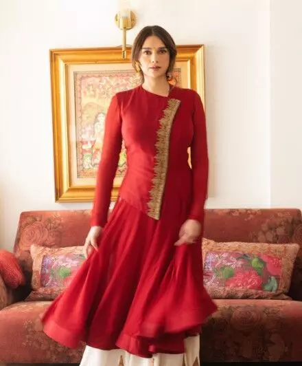 एक्ट्रेस अदिति राव हैदरी का यह रेड कुर्ता-पलाजो लुक बेहद सुंदर है। इसे देखकर हर महिला का दिल करेगा, कि इस तरह का लुक अपनाया जाए। अगर आप किसी त्योहार, या खास मौके के लिए ट्रेडिशनल आउटफिट खोज रही हैं, तो यह लुक आपके लिए परफेक्ट हो सकता है।