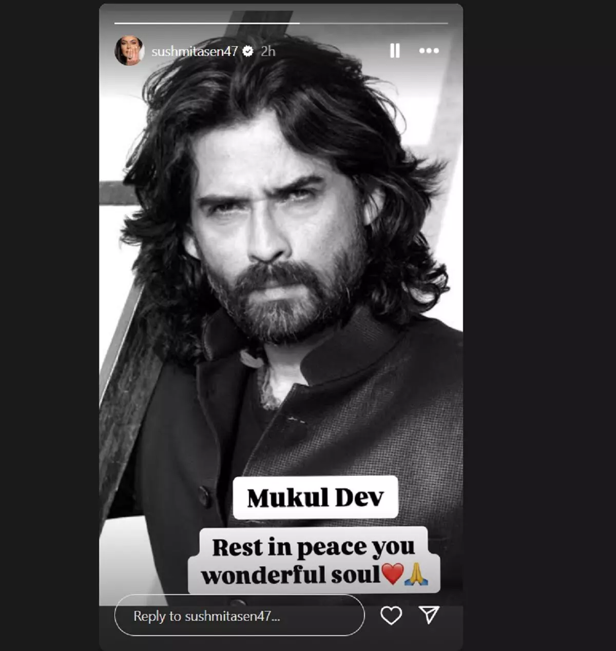दस्तक की को-एक्ट्रेस सुष्मिता सेन ने इंस्टा स्टोरी पर मुकुल की तस्वीर साझा करते हुए संक्षिप्त लेकिन भावुक संदेश लिखा: "रेस्ट इन पीस।"