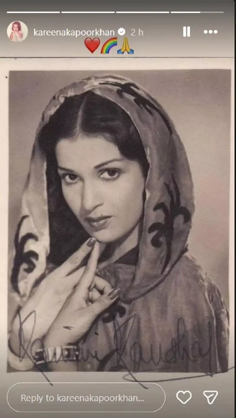 करीना कपूर ने भी इंस्टाग्राम स्टोरी पर कामिनी कौशल को श्रद्धांजलि दी।