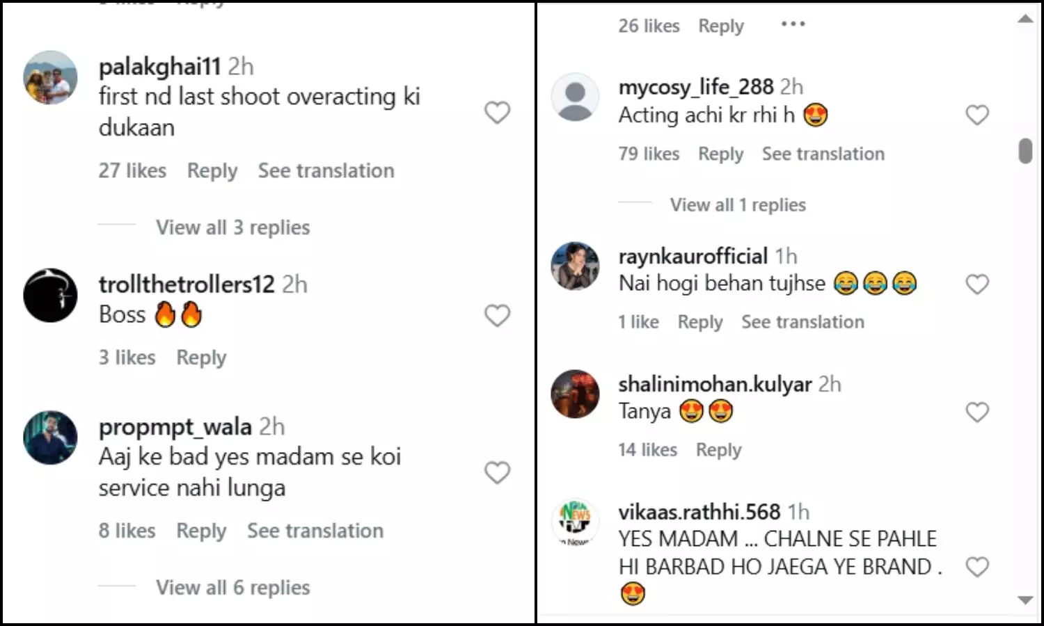 हालांकि, हर किसी की राय एक जैसी नहीं रही। कुछ सोशल मीडिया यूजर्स का कहना है कि विज्ञापन में तान्या की एक्टिंग थोड़ी ज्यादा हो गई है। एक यूजर ने लिखा कि यह उनकी पहली और आखिरी शूट लग रही है क्योंकि एक्टिंग में ओवरडोज नजर आ रहा है। वहीं एक अन्य यूजर ने कहा कि बाकी सब ठीक है, लेकिन एड में तान्या थोड़ी ओवरएक्टिंग करती दिख रही हैं।