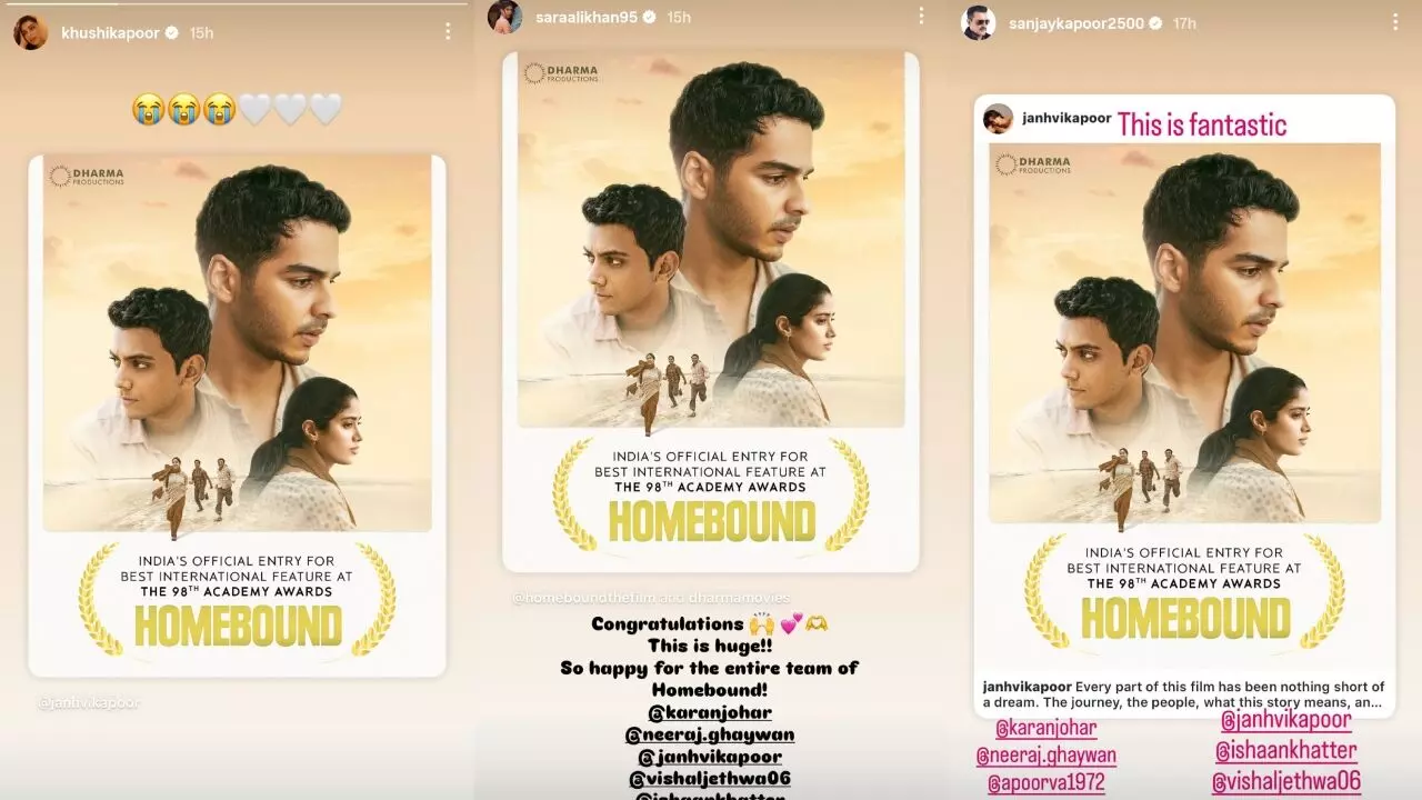 होमबाउंड की ऑस्कर में एंट्री से बॉलीवुड में खुशी की लहर: करीना कपूर-अनन्या पांडे समेत कई सितारों ने दी दिल से बधाई