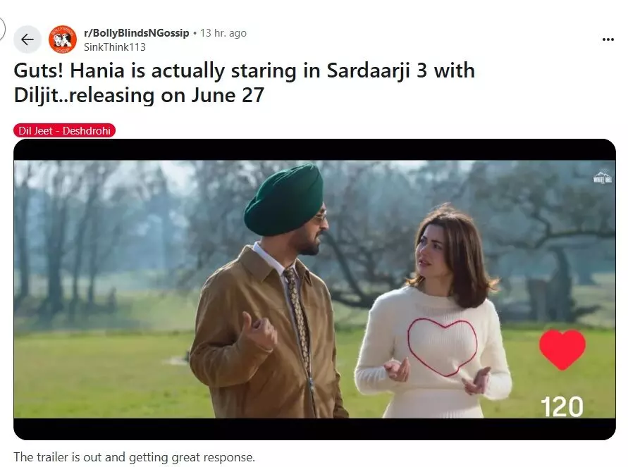 फिल्म के ट्रेलर में दिलजीत और हानिया दोनों को एक साथ स्क्रीन पर देखा गया है, जहां वे भूत भगाने का काम करते हैं। हालांकि, भारत और पाकिस्तान के बीच बढ़ते तनाव के बीच एक पाकिस्तानी कलाकार को फिल्म में शामिल करने को लेकर कई लोगों ने नाराजगी जताई है।