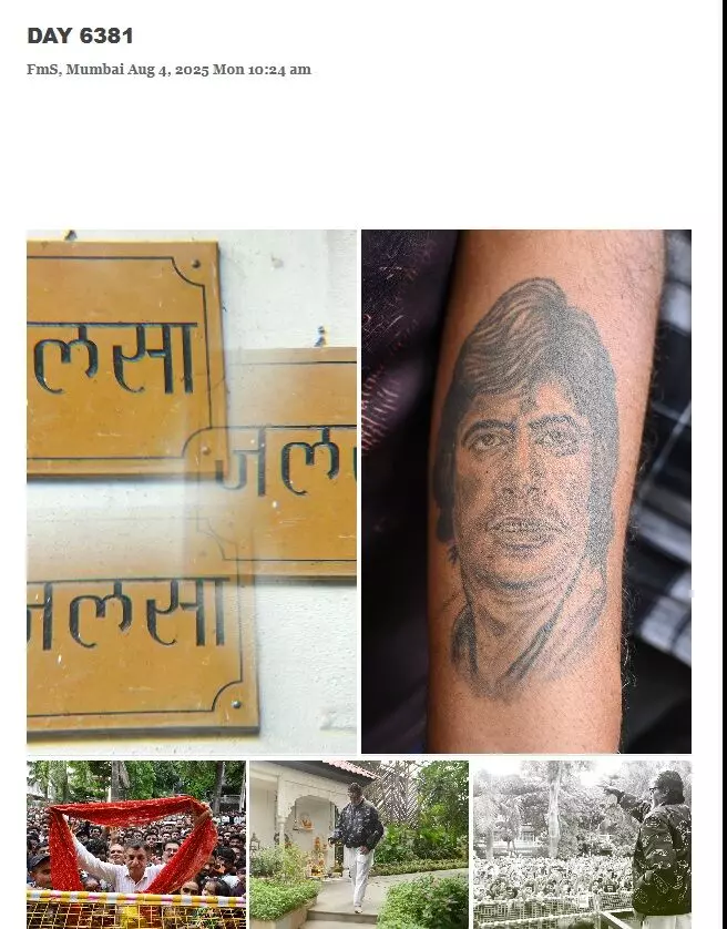 Amitabh Bachchan: मेगास्टार अमिताभ बच्चन के लिए फैंस की दीवानगी सिर चढ़कर बोलती है। हाल ही में एक फैन ने अपनी बांह पर बिग बी के चेहरा के टाटू बनवाया है जिसकी झलक खुद एक्टर ने दिखाई है। हर रविवार को अमिताभ बच्चन से मिलने के लिए सैंकड़ों फैंस उनके घर जलसा के बाहर उनकी झलक पाने आते हैं। इसकी तस्वीरें एक्टर ने अपने ब्लॉक पर शेयर की हैं।