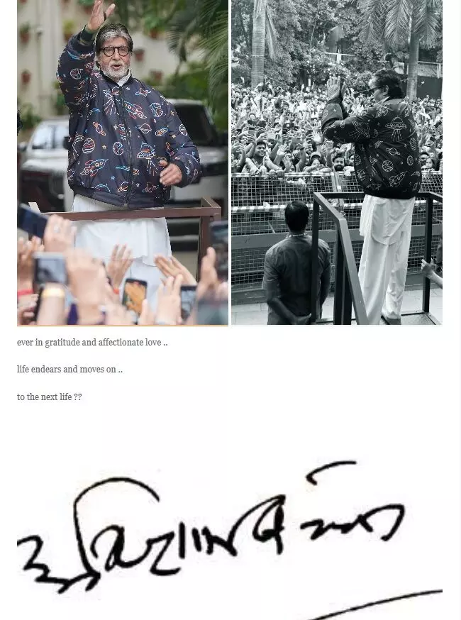 अमिताभ बच्चन ने अपने ब्लॉग पर इन तस्वीरों के साथ एक भावुक नोट भी लिखा। उन्होंने फैन की तस्वीर पर लिखा- सदैव आभार और स्नेहभरा प्यार… जीवन आगे बढ़ता है… क्या अगले जीवन तक?
