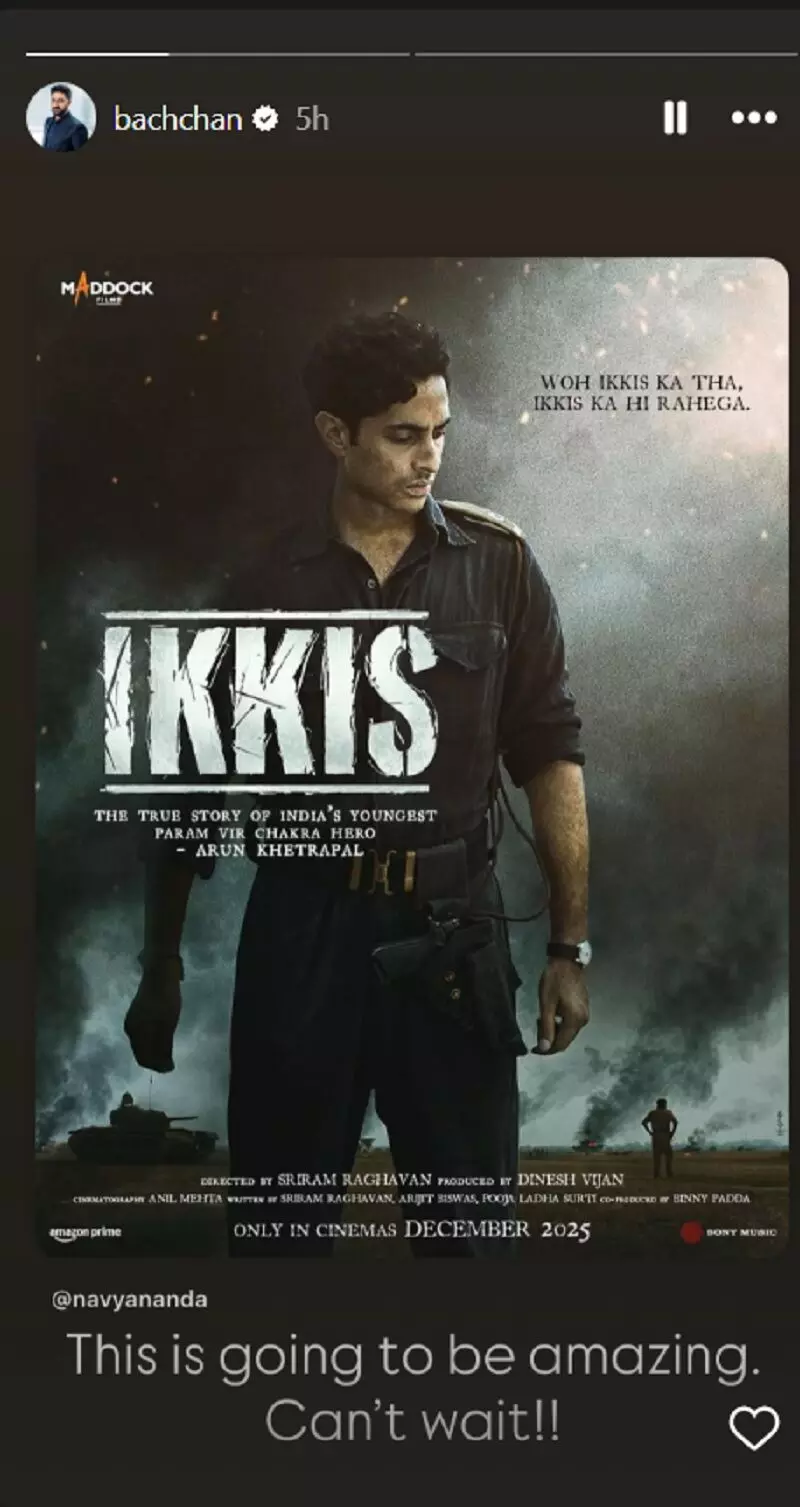 जैसे ही पोस्टर सामने आया, अगस्त्य की बहन नव्या नवेली नंदा और मामा अभिषेक बच्चन ने सोशल मीडिया पर इसे शेयर कर उनके लिए प्यार और सपोर्ट जताया। अगस्त्य की कथित गर्लफ्रेंड और शाहरुख खान की बेटी सुहाना खान ने भी अपने इंस्टाग्राम स्टोरी पर पोस्टर शेयर कर उनका हौसला बढ़ाया।