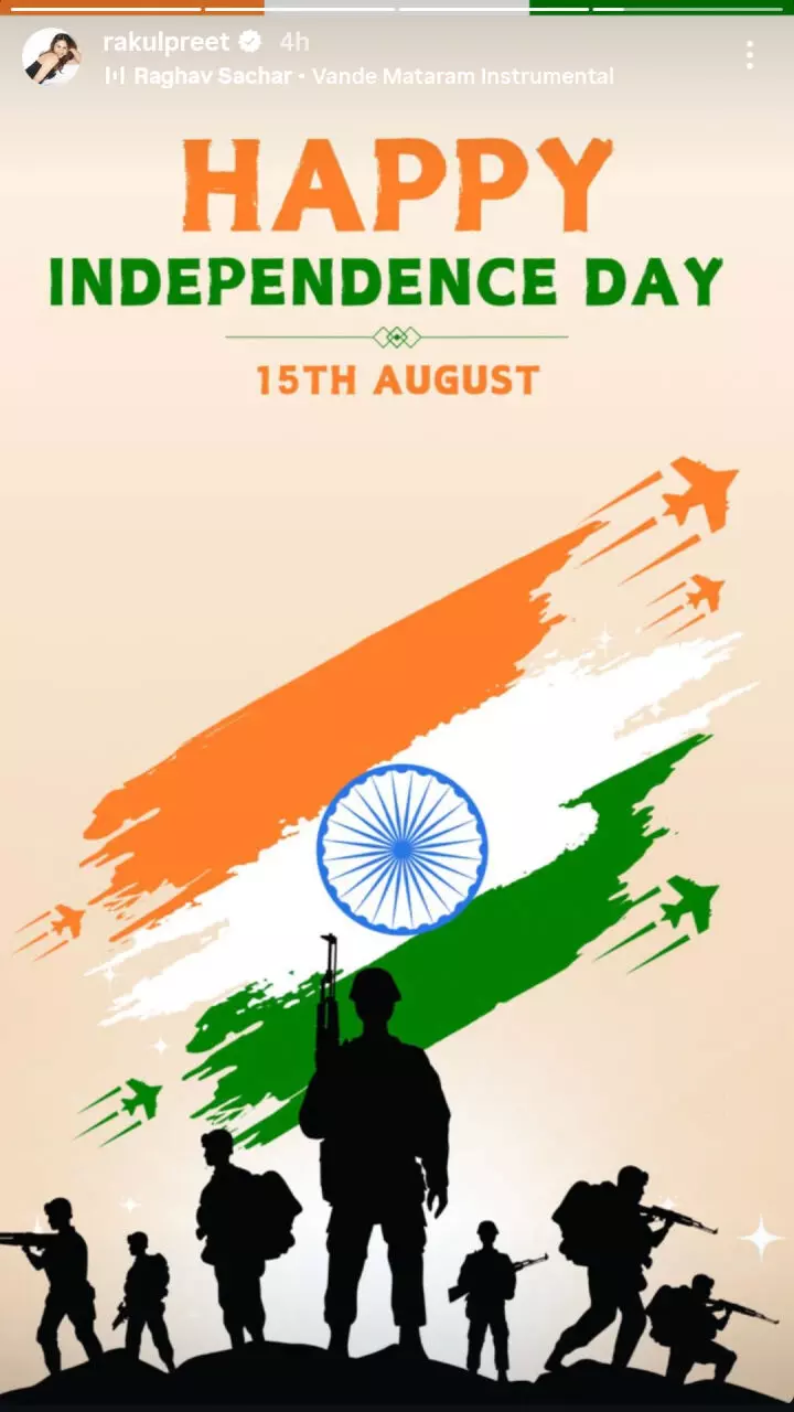 रकुल प्रीत सिंह ने भी पोस्ट कर लिखा, "स्वतंत्रता दिवस की हार्दिक शुभकामनाएं।"