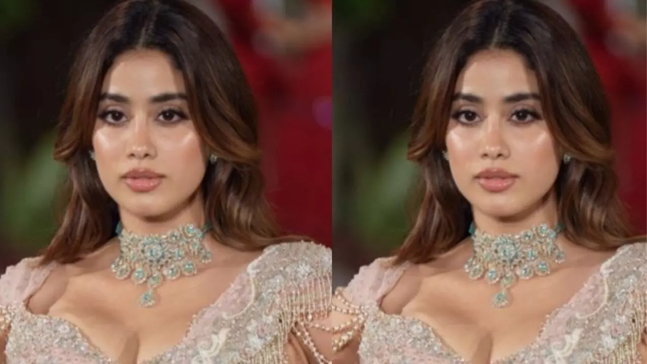 जान्हवी ने एक खूबसूरत फिश कट लहंगा पहना था, जो पारंपरिक भारतीय पहनावे और मॉडर्न ग्लैमर का परफेक्ट मेल था। लहंगे का रंग हल्का गुलाबी ब्लश पिंक था, जो काफी सॉफ्ट और शाइनी लग रहा था। ब्लाउज़ का डिजाइन स्वीटहार्ट नेकलाइन वाला था, जो उनके लुक को स्टाइलिश और बोल्ड बना रहा था। खास बात यह थी कि, ब्लाउज की स्लीव्स काफी स्टाइलिश लग रही थी और उन पर मोतियों की चेन जैसी कढ़ाई थी, जो पूरी ड्रेस को एक रॉयल टच दे रही थी।