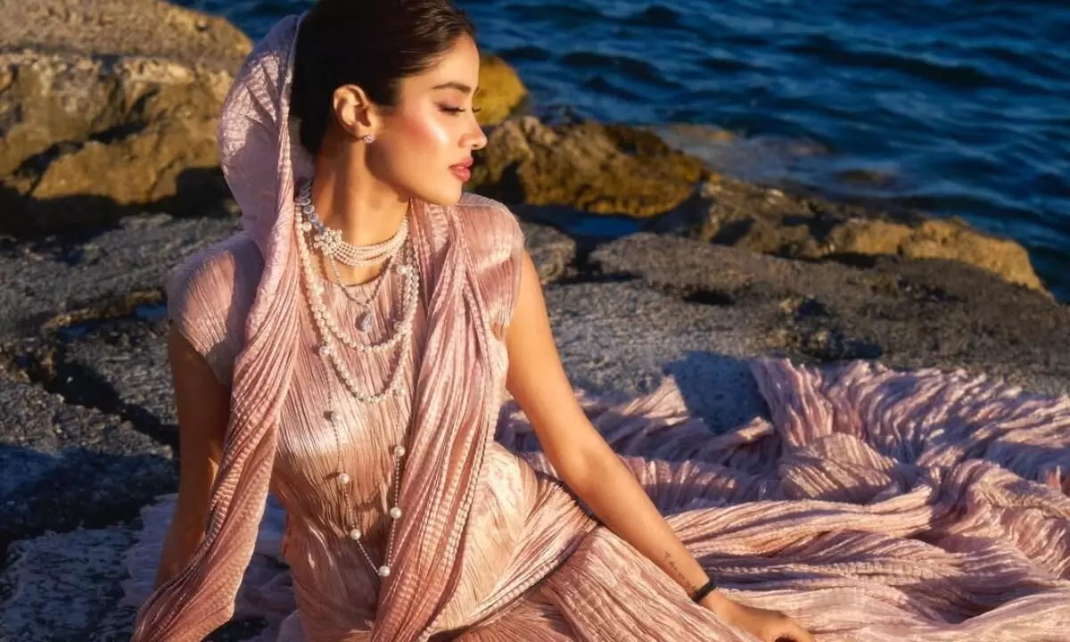 जान्हवी की ड्रेस को बनाने में बनारस के असली टिशू फैब्रिक का इस्तेमाल किया गया था, जिसे पारंपरिक हाथ से कुचलने वाली तकनीक से तैयार किया गया। उन्होंने अपने लुक को मोती वाले जूलरी सेट के साथ कम्प्लीट किया, जो उनके पूरे लुक में ग्रेस और एलिगेंस भर रहा था।