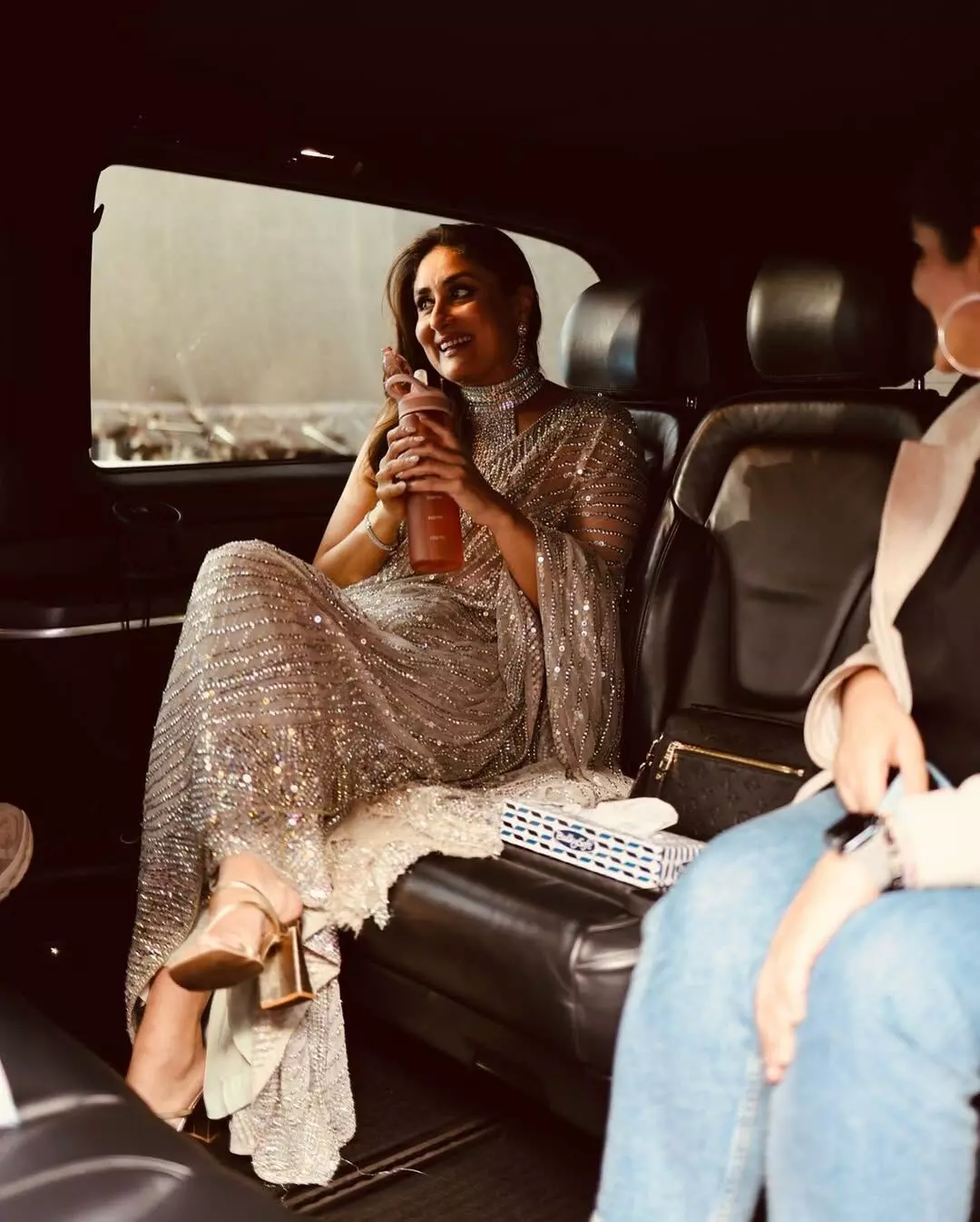 सिल्वर साड़ी में करीना कपूर खान का दिखीं बेहद खूबसूरत।