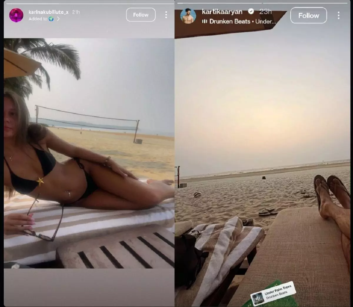 दरअसल, कार्तिक आर्यन ने हाल ही में गोवा से एक फोटो शेयर की, जिसमें वह बीच बेड पर बैठकर सनसेट का आनंद लेते नजर आए। इसके कुछ समय बाद रेडिट पर एक महिला की तस्वीर सामने आई, जिसे करीना कुबिलियट बताया जा रहा है। उस फोटो में भी बीच बेड, सनसेट और बैकग्राउंड काफी हद तक कार्तिक की तस्वीर से मिलता-जुलता दिखा। यही समानताएं देखकर सोशल मीडिया यूजर्स ने अंदाजा लगाना शुरू कर दिया कि दोनों एक साथ वेकेशन पर हो सकते हैं।