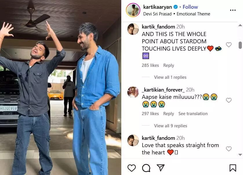 कार्तिक के इस पोस्ट पर फैंस जमकर तारीफें कर रहे हैं। एक यूजर ने लिखा, “यही है स्टारडम का असली मतलब। एक अन्य ने कहा, “ये है वो प्यार जो सालों की मेहनत से कमाया है।”