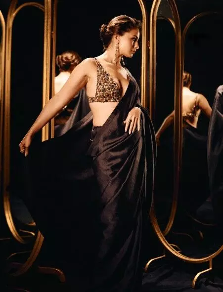अगर आप न्यू ईयर पार्टी में ट्रेडिशनल पहनना चाहती हैं, तो आलिया भट्ट की ब्लैक साड़ी, और गोल्डन ब्लाउज वाला लुक एक बेहतरीन विकल्प है। आलिया की तरह आप भी इस साड़ी के साथ सुंदर मेकअप, और बालों का बन या ओपन हेयर स्टाइल कर सकती हैं। यह लुक उन महिलाओं के लिए परफेक्ट है, जो ट्रेडिशनल रहते हुए भी पार्टी में ग्लैमर लाना चाहती हैं।