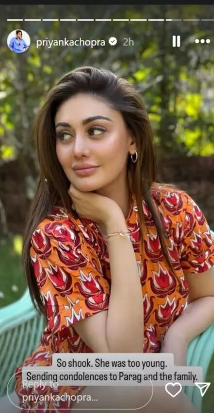 रविवार को प्रियंका चोपड़ा ने इंस्टाग्राम स्टोरी पर शेफाली की एक तस्वीर साझा करते हुए गहरा दुख व्यक्त किया। उन्होंने लिखा, “बहुत स्तब्ध हूं। वो बहुत यंग थीं। पाराग और उनके परिवार के लिए मेरी संवेदनाएं।”