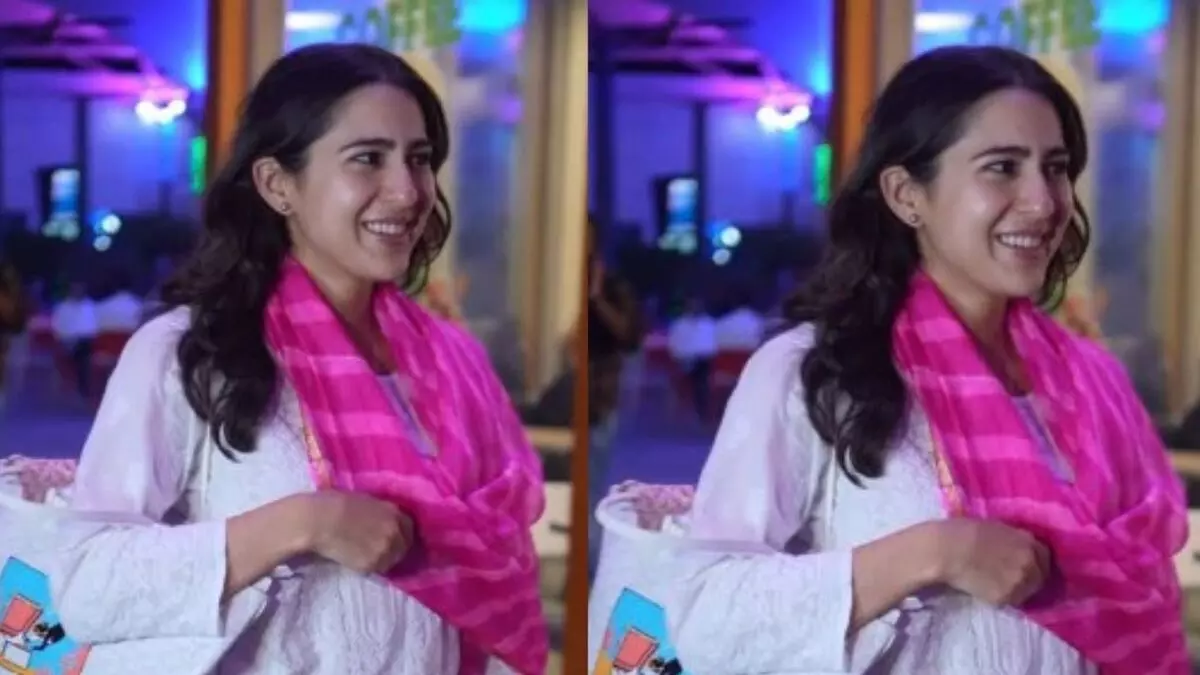 सारा ने अपने व्हाइट सूट के साथ हल्के गुलाबी रंग का प्रिंटेड दुपट्टा कैरी किया हुआ था, जो उनके पूरे लुक को एक नाज़ुक टच दे रहा था। यह कलर कॉम्बिनेशन बहुत ही फ्रेश और समर फ्रेंडली लग रहा था।