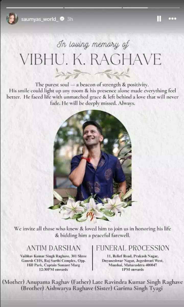 सौम्या टंडन ने स्टोरी में लिखा कि सबसे शुद्ध आत्मा, शक्ति और सकारात्मकता की किरण। उनकी मुस्कान किसी भी कमरे को रोशन कर सकती थी और उनकी उपस्थिति ही सब कुछ बेहतर बना देती थी। उन्होंने बेजोड़ शालीनता के साथ जीवन को जिया और अपने पीछे अपार प्रेम छोड़ गए हैं। उनकी बहुत याद आएगी। इसके अलावा करण वीर मेहरा और सिंपल कौल ने भी सोशल मीडिया पर पोस्ट शेयर कर शोक जताया है।