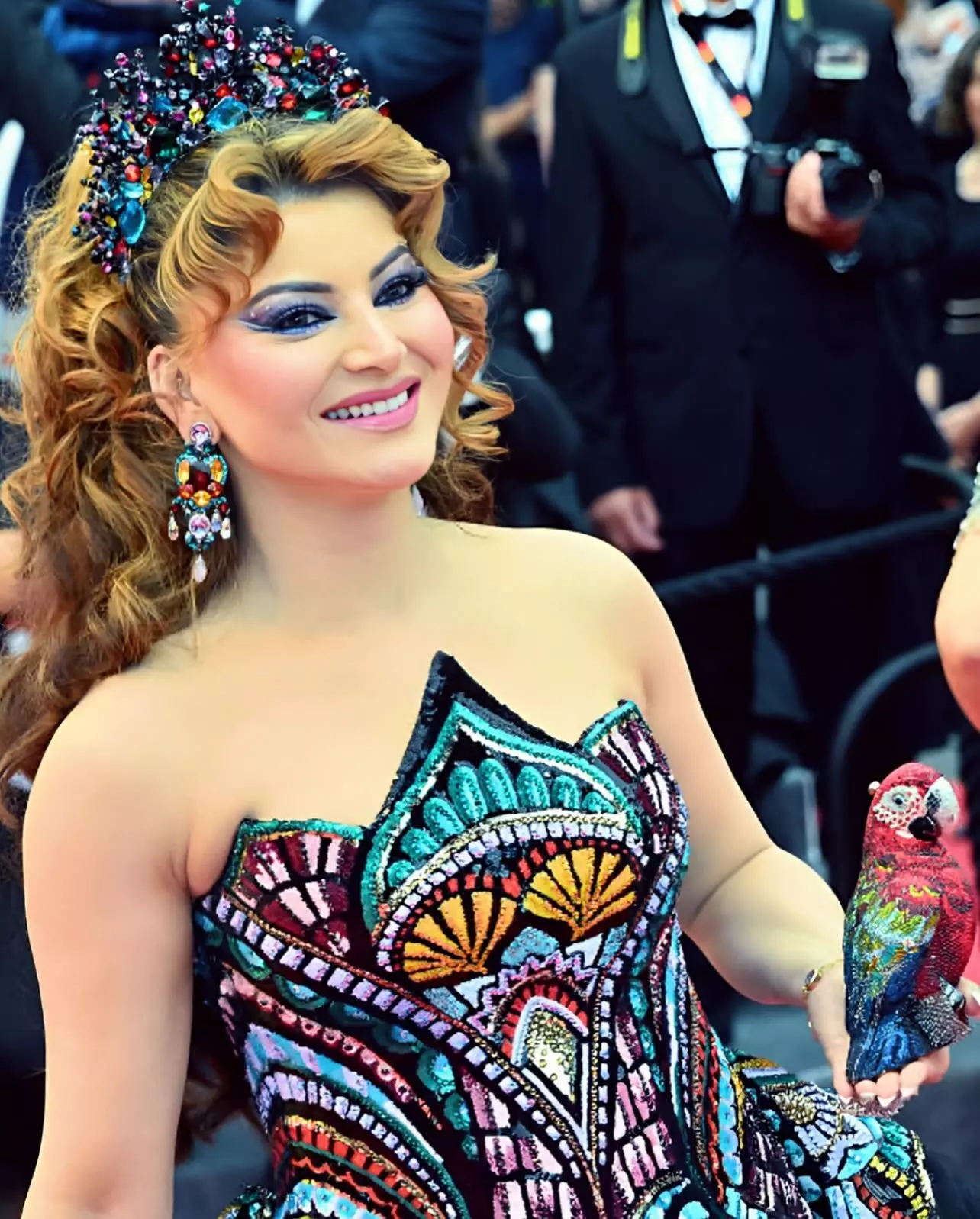 एक्ट्रेस का कान्स लुक काफी अतरंगी रहा। उन्होंने मल्टीकलर्ड गाउन पहना था जिसपर बटरफ्लाइ इफेक्ट था। इसके साथ मल्टीकलर्ड ईयररिंग्स कैरी की साथ ही सिर पर क्रिस्टल वाला ताज पहना।