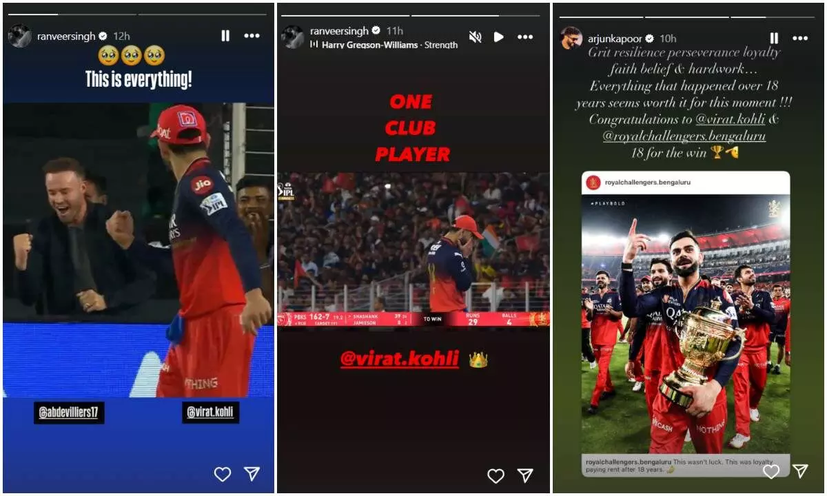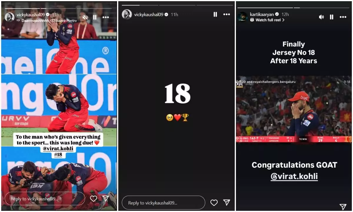 RCB की ऐतिहासिक जीत पर झूमे बॉलीवुड सेलेब्स: विराट कोहली को आमिर ने कहा 'परफेक्शनिस्ट'; रणवीर-विक्की का जश्न