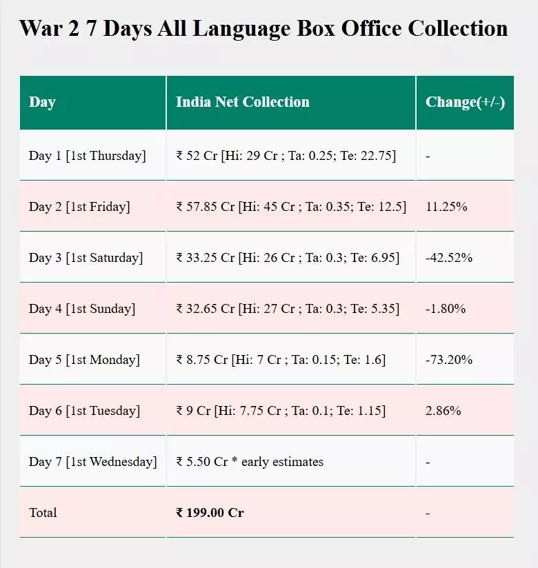 वॉर 2 का बॉक्स ऑफिस कलेक्श
