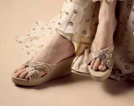 - मार्केट में कलर्ड और एम्ब्रॉयडरी वाले वेज हील्स भी मिलते हैं जिन्हें फेस्टिव या वेडिंग साड़ी के साथ मैच किया जा सकता है।