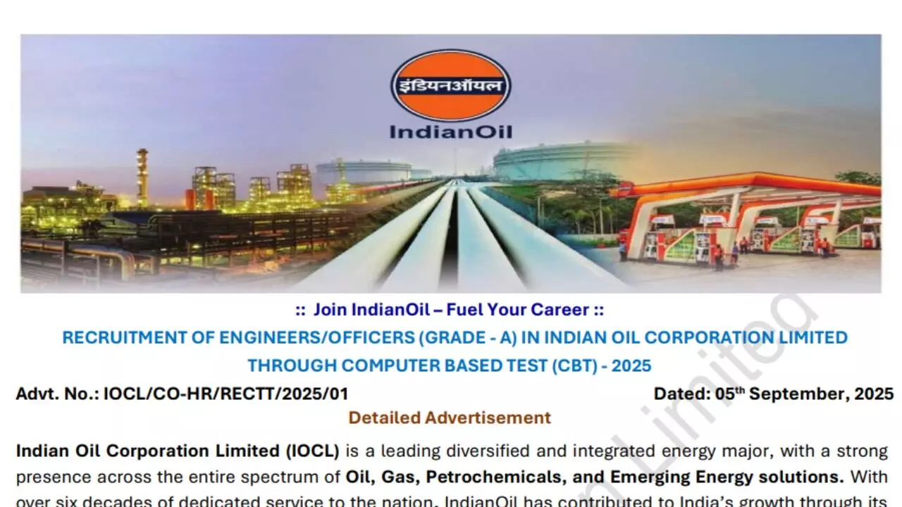 IOCL Grade A Recruitment 2025: इंजीनियर-ऑफिसर पदों के लिए आवेदन शुरू, परीक्षा की तिथि भी घोषित