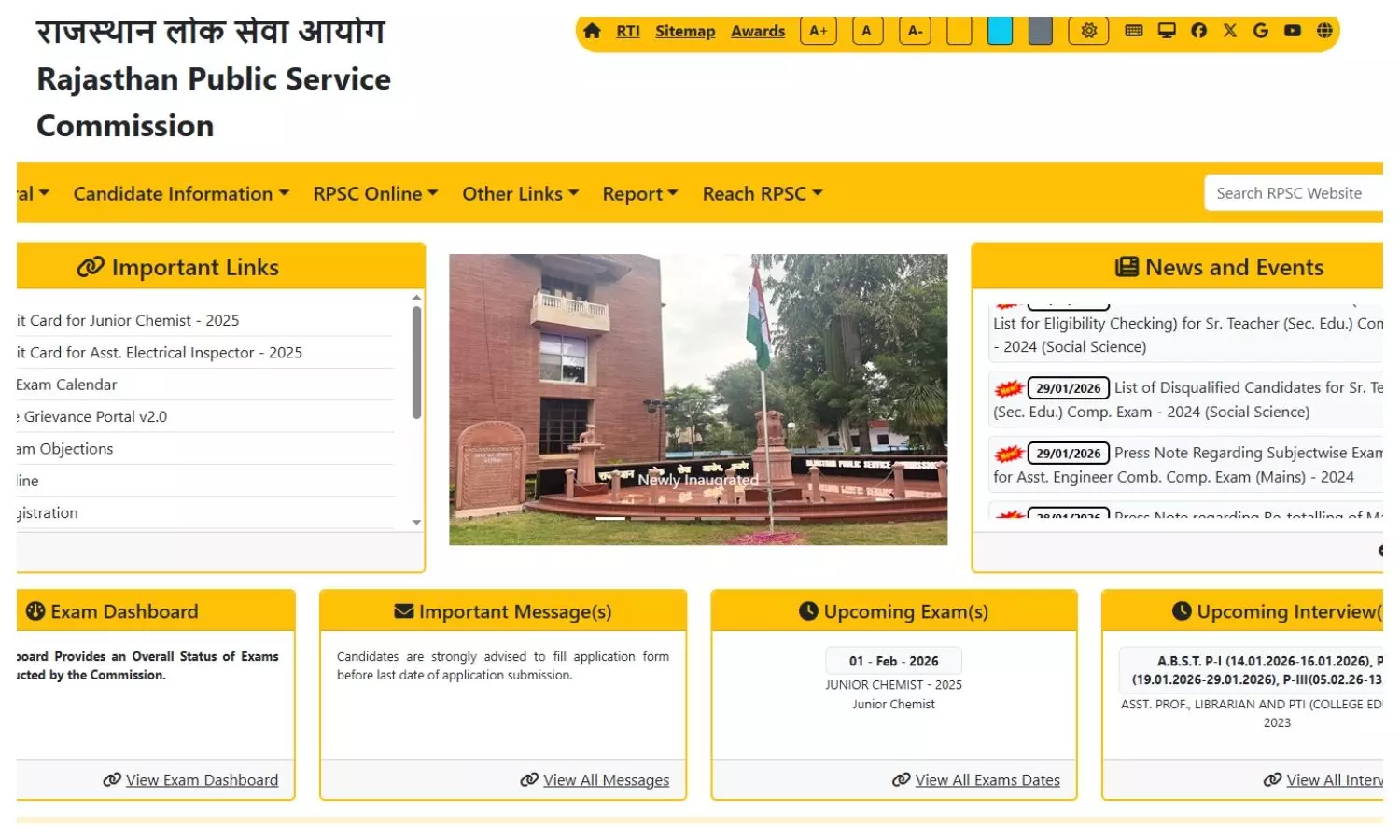 - सबसे पहले RPSC की ऑफिशियल वेबसाइट rpsc.rajasthan.gov.in पर जाएं
