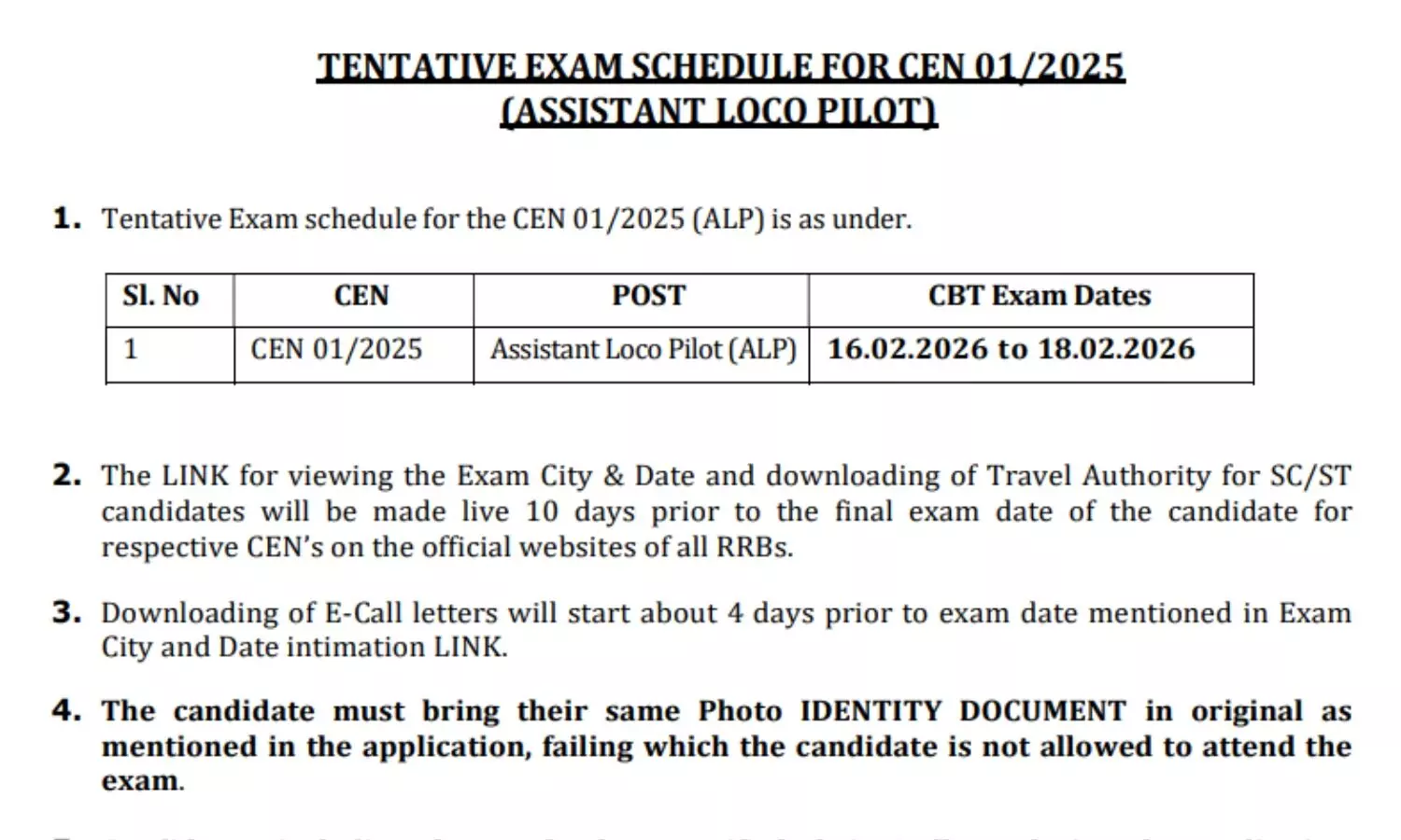RRB की ओर से जारी नोटिस में साफ कहा गया है कि उम्मीदवारों को परीक्षा केंद्र पर वही मूल फोटो पहचान पत्र लाना अनिवार्य होगा, जिसका विवरण आवेदन फॉर्म में भरा गया था। पहचान पत्र न होने की स्थिति में परीक्षा में बैठने की अनुमति नहीं दी जाएगी।